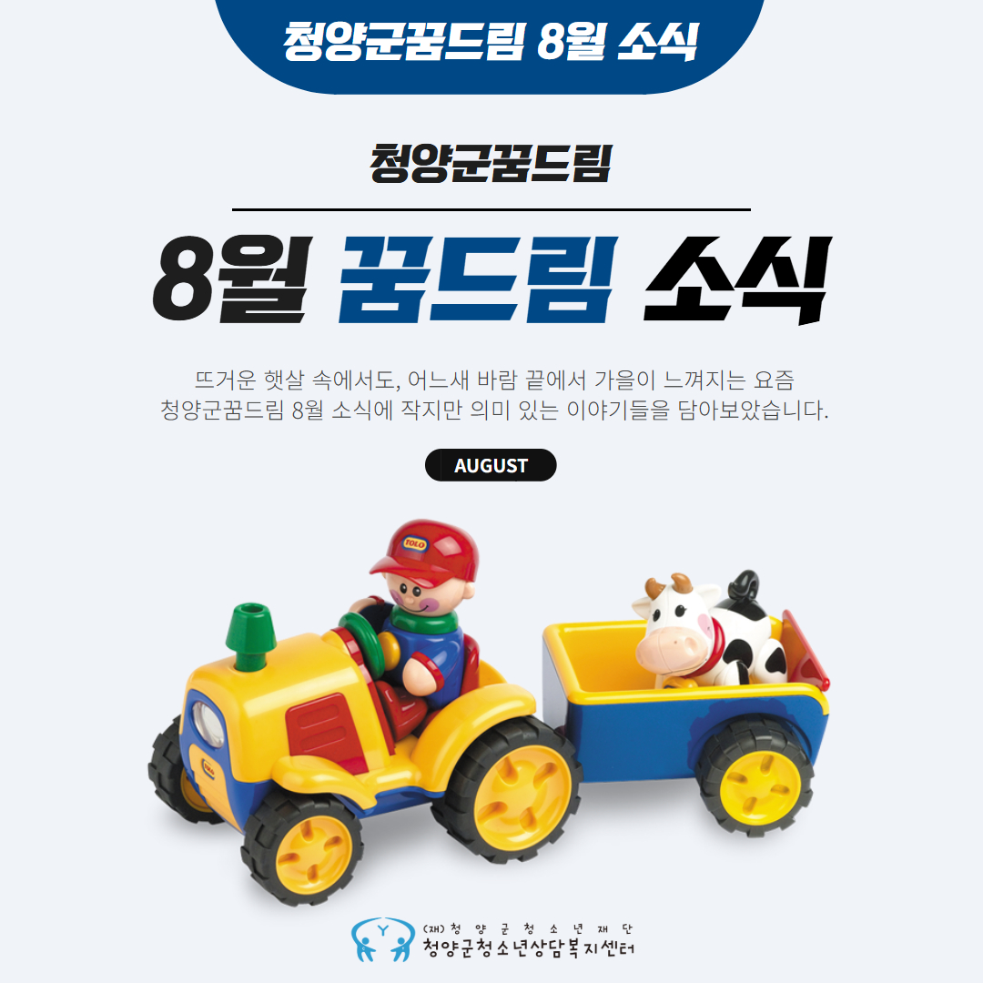 청양군꿈드림 8월 소식에 작지만 의미 있는 이야기를 담아보았는데요.