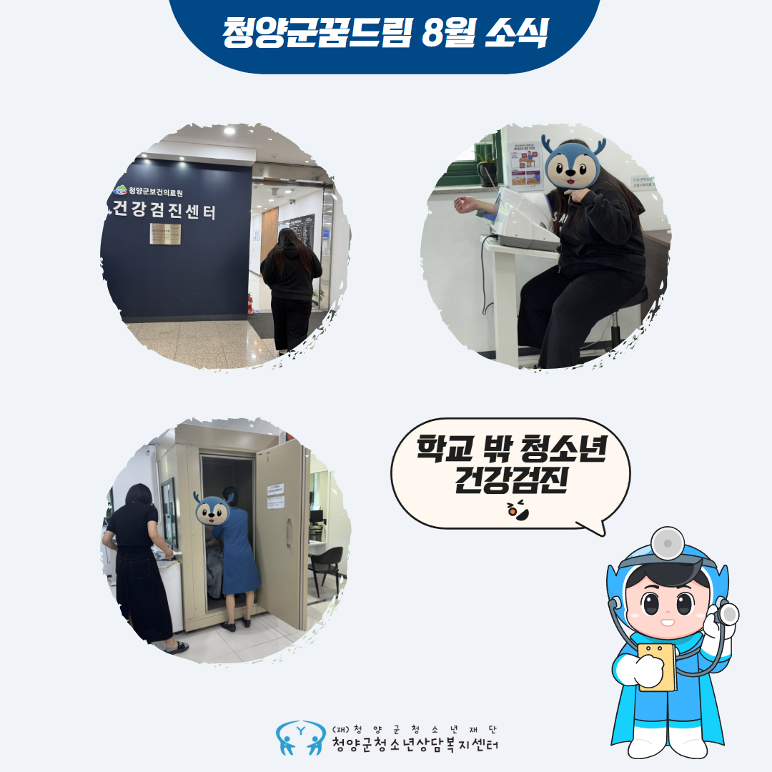 8월은 “건강검진”의 달이었습니다. 학교 밖 청소년은 무료로 건강검진을 받을 수 있는데요.