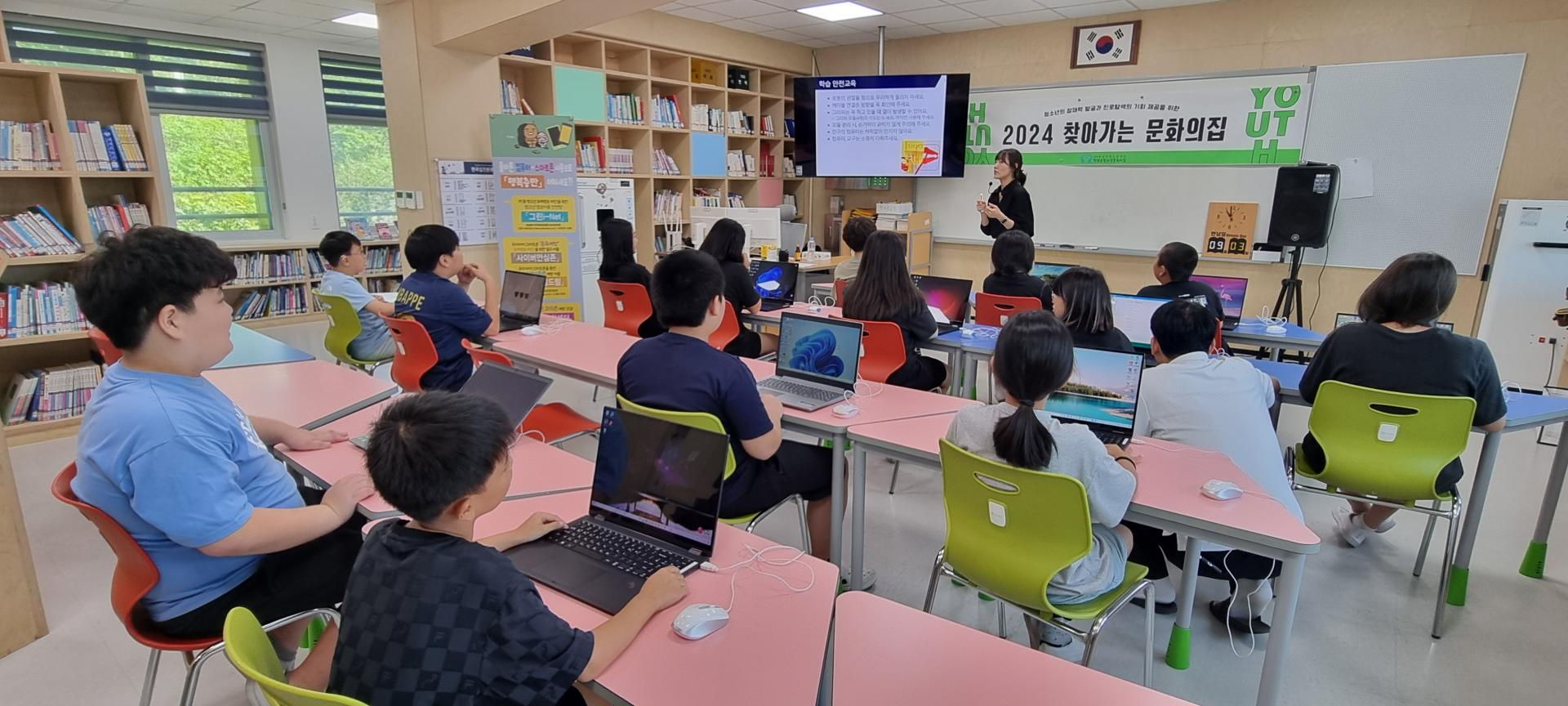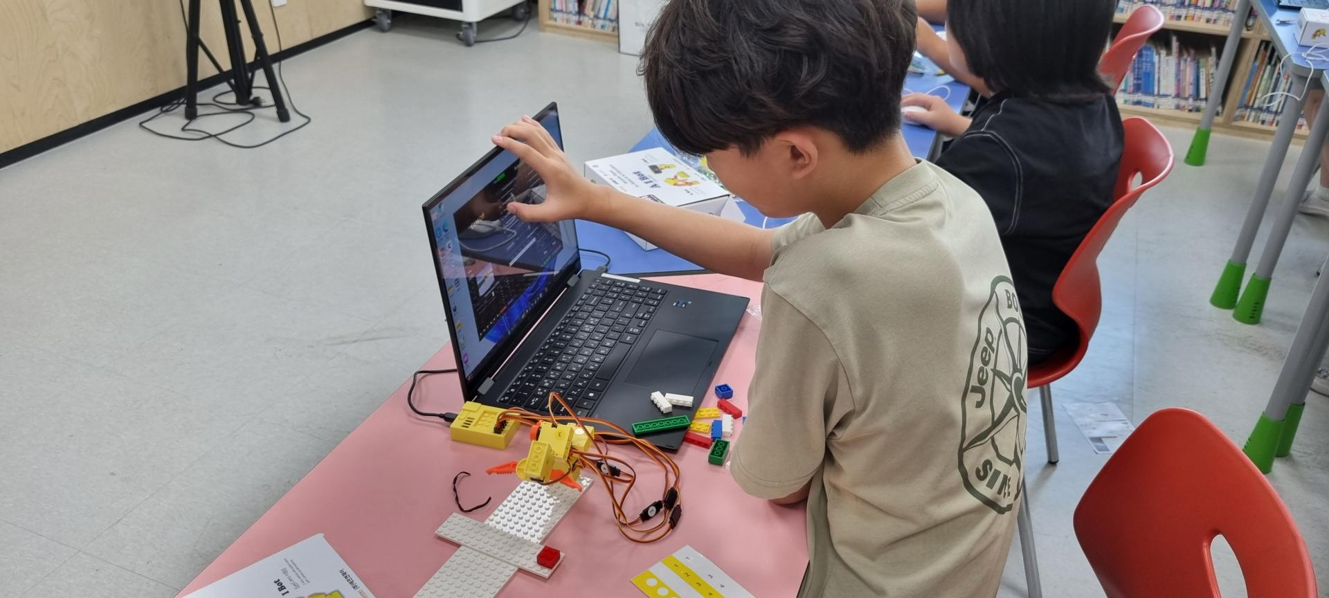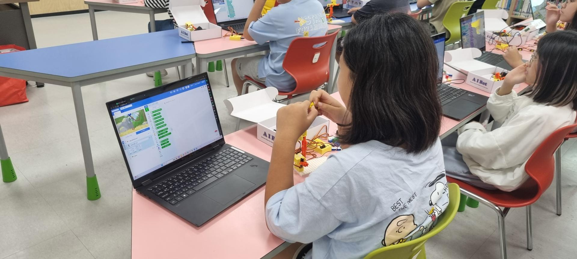 5~6학년 청소년들과 '로봇, 코딩놀이터' 프로그램으로 3축 로봇과 AI Desk 프로그램, 엔트리 프로그램을 활용한 코딩을 배워보고 직접 미니 게임을 만들어 실행해보는 재미있는 시간을 가졌습니다!